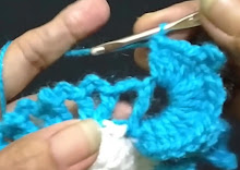 first half petal made (it's second part we shall make at last).At last sc 1 in last skipped st, dc 6 in right arm of V, dc 3 in ch3-sp of V, join by sl st with the first dc.